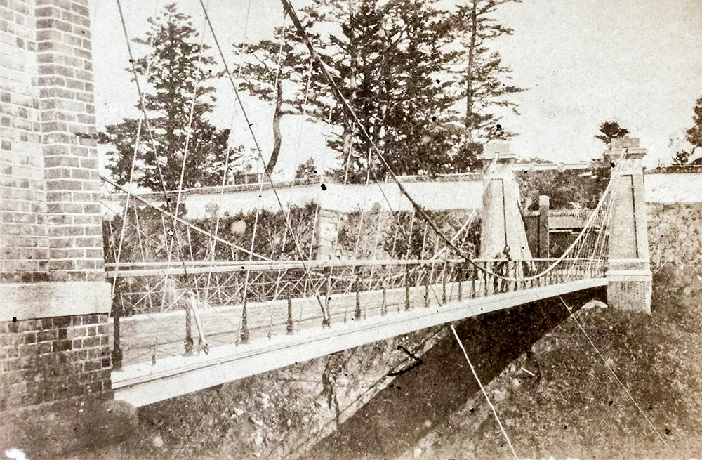 ❹ 皇居内に架設されていた鉄製吊り橋「山里釣橋」。撤去され競売に掛けられて当該地への架橋が目論まれたがこれも実現しなかった。(紅林所蔵)
