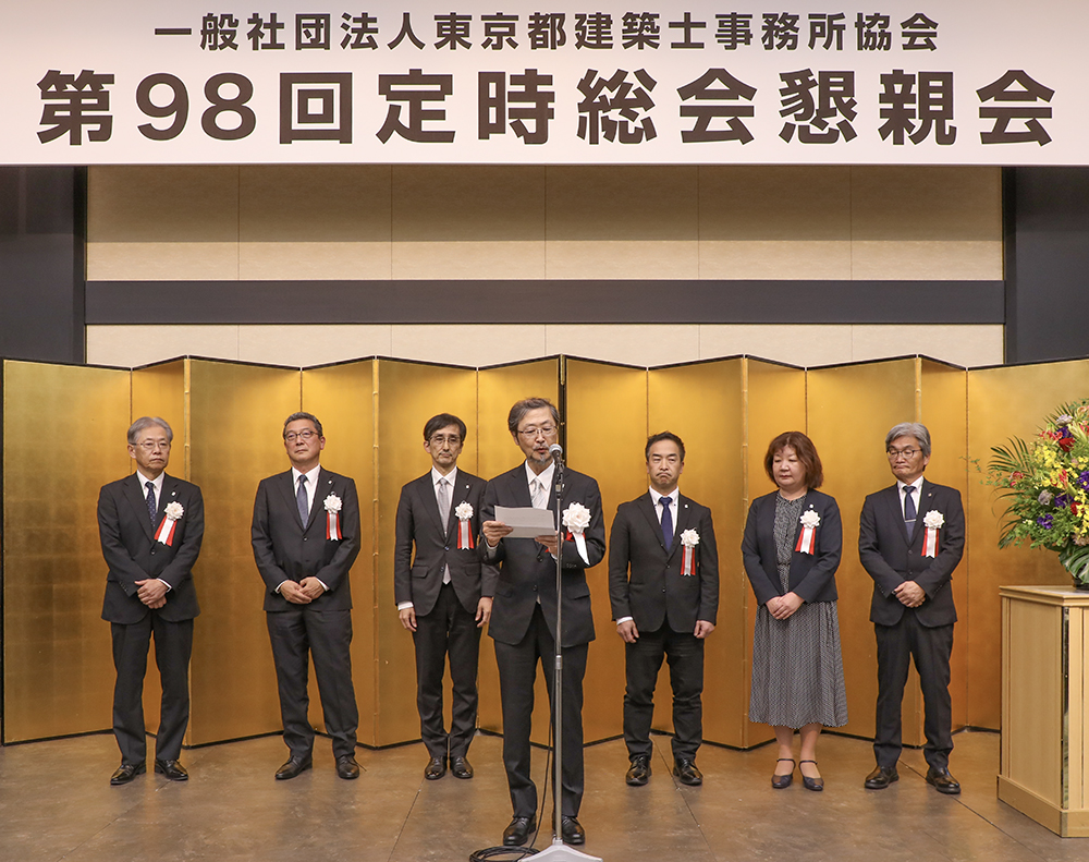 東京都は現在2050東京戦略に基づき、すべての人が安心安全に暮らせる都市や脱炭素社会の実現に取り組んでいます。こうしたなか貴協会におかれましては、建築事務所の登録業務に加えまして、建築物の耐震化・省エネ化の推進にご尽力いただいています。皆様のご支援により、震災時の救援・復旧の生命線となる特定緊急輸送道路沿道の建築物耐震化率は90%近くまで進んでまいりました。住宅については、旧耐震基準の住宅に加え、2000年以前建築された新耐震基準の木造住宅につきましても耐震化を進めて参りますので、ご協力をお願いいたします。また本年4月より改正建築基準法等が施行され、大きな制度改正がありました。貴会では昨年末に建築士サポートセンターを開設いただきました。今後とも連携を図りながら、円滑な制度運用に取り組んでまいります。