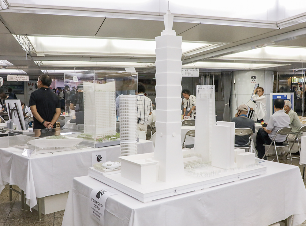 「つくる」をテーマにした今年の新企画。新宿支部、千代田支部、中央支部、港支部、立川支部、台東支部、南部支部、西多摩支部から11事務所16作品が集結。大規模なプロジェクトの高層ビルから住宅模型もあり、建物用途もバラエティに豊かだった。いずれも見応えのある精密な建築模型で、熱心に鑑賞している来場者の姿があり、建築とのふれあいが実感できるものだった。