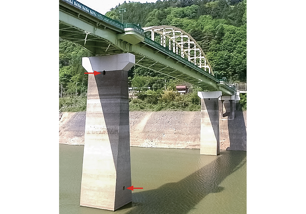 ❻「坪沢橋」の中央を絞った鉛直材(国内唯一)。(撮影:紅林 2005年)