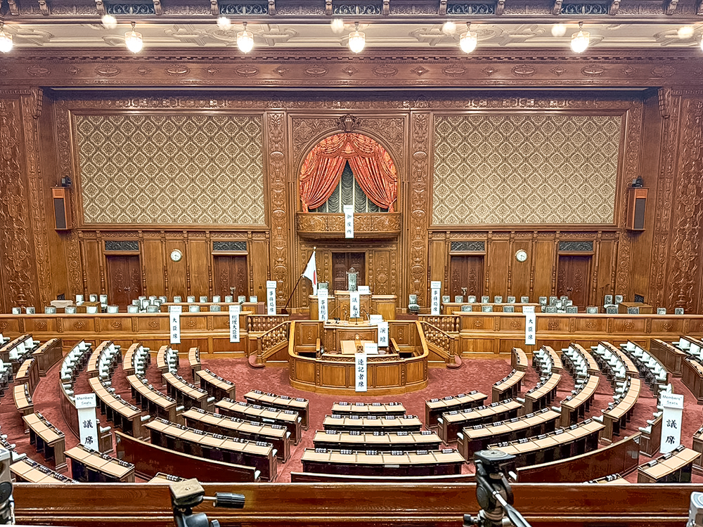 衆議院の議場はあまりに広い大空間。照明、インテリア等が凝られていて、どのようなやりとりがあってこの大空間を設計したのだろうと感嘆と同時に、設計に携わる人として作業量がなんとなく理解できて、これは大変だったろうなと複雑な気持ちになったりも。