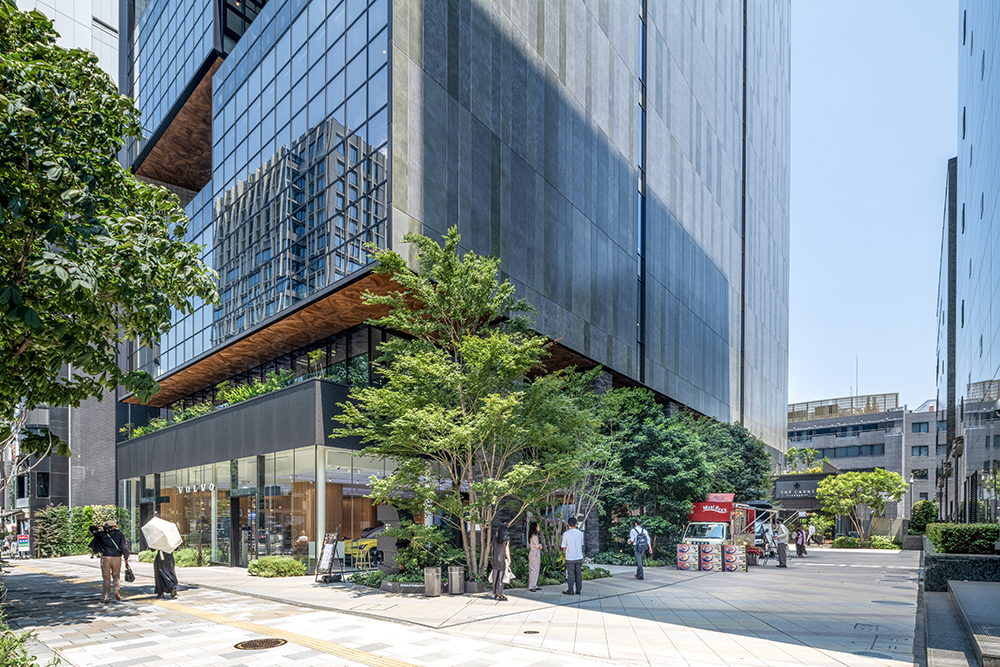 テナントオフィスビルという通常であれば、効率のみを優先することに陥りがちなビルディングタイプにおいて、アウターテラスやポケットパークなどの新しい価値を挿入させた点を高く評価した。まず1階にふたつの大通りを繋ぐ貫通通路を整備しているのが素晴らしい。貫通通路に緑豊かなポケットパークを設けることで、オフィスを使わない人にも街を回遊する楽しさを提供している。オフィスエントランスを前面道路ではなく、貫通通路の途中に設けているのは、路面の店舗にとってもプラスであるし、オフィスで働く人びとにとってもプラスになっているのが感じられる。ポケットパークに隣接したレストランも路面店のような趣を備え、貫通通路をより豊かなものとしている。そして何よりもこのビルを特徴づけているのは、オフィス階に2層吹き抜けのアウターテラスを設けていることである。アウターテラスは、高層階で働く人にとって憩いの場となるだけでなく、街の風景を豊かなものにしている。オフィスへの熱負荷を軽減するのにも役立っている。アウターテラスに隣接するインナーテラスの窓が開閉可能で、自然通風が可能となっているのも良い。今後のテナントビルのプロトタイプにもなり得るプロジェクトである。(手塚 由比)