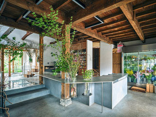 - 花屋店舗内部。左奥にカフェ。