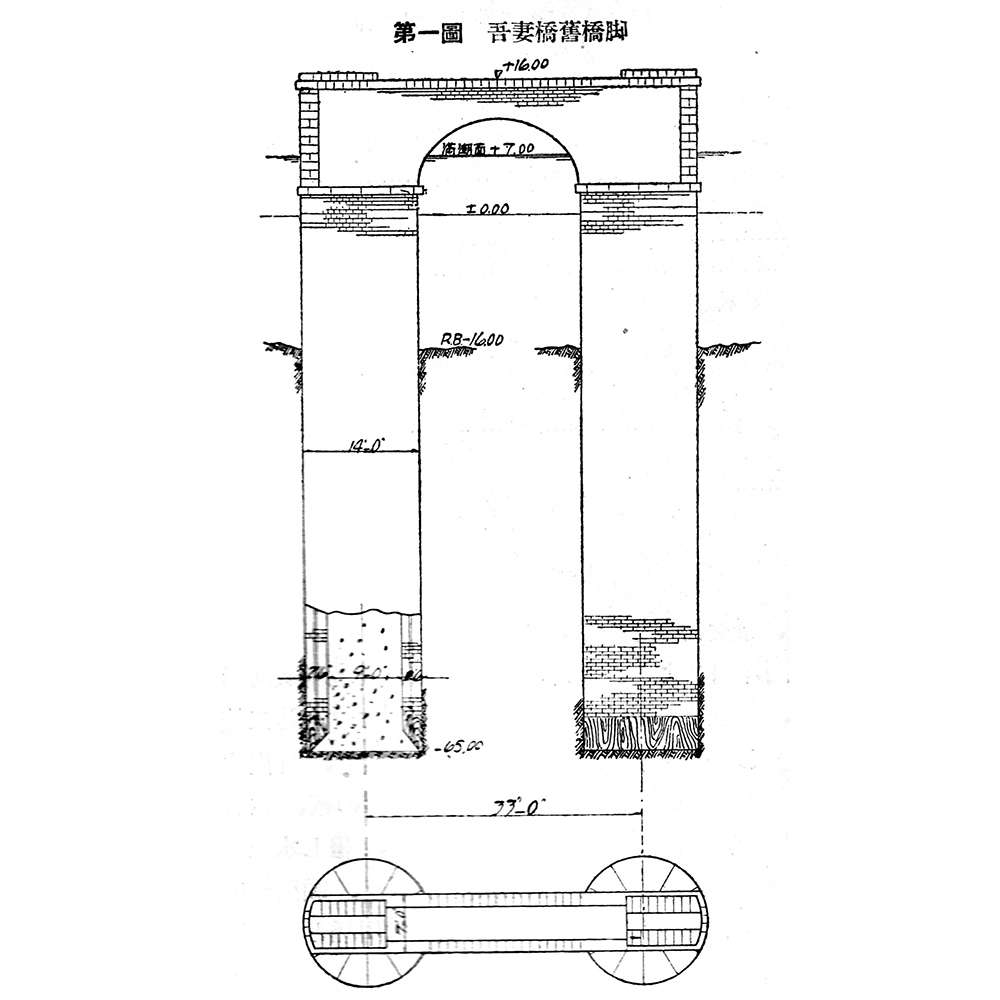 ❾吾妻橋旧橋基礎(煉瓦造井筒)『東京市吾妻橋改築工事報告』(有元岩鶴)(紅林所蔵)