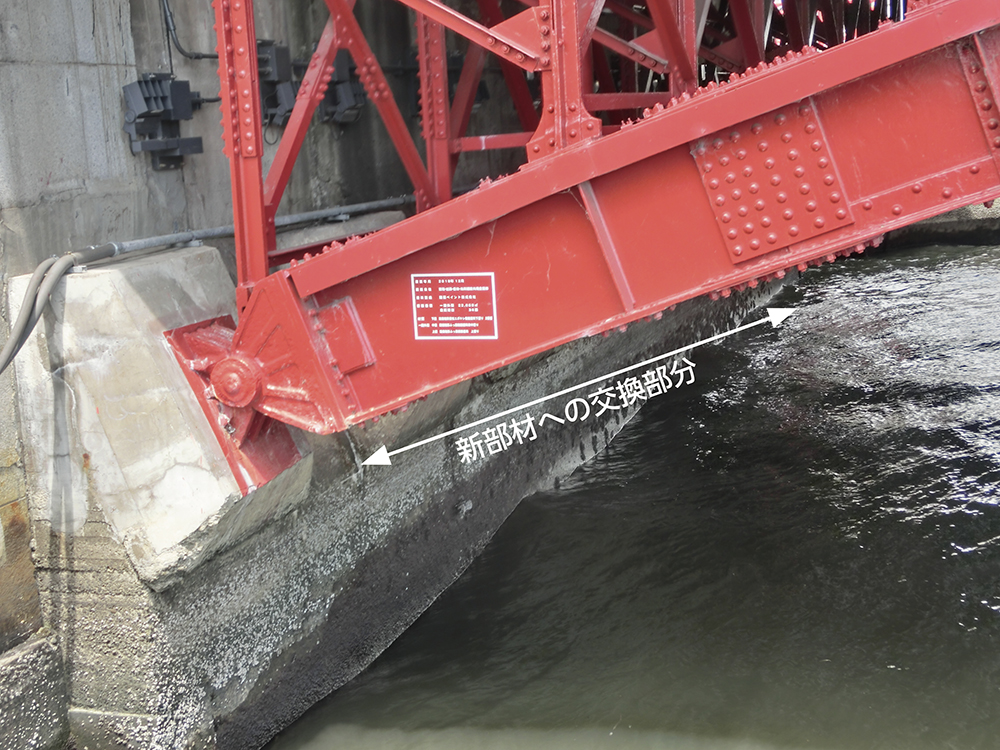 吾妻橋のアーチスプリキング(アーチリブ両端)は、水面からの離隔がわずかなため、鋼材の腐食が激しくなっていた。このため2016(平成28)~17(平成29)年にアーチリブの一部を切断して、新部材で置き換えるという補修工事を、交通を通しながら実施した(⓫)。アーチスプリキング部をよく見ると、リベットがない鋼材がある。この部分が新規鋼材に交換した部分(⓫)である。この補修工事により、橋の寿命が延び、次世代に健全な姿で引き継ぐことができたと思う。