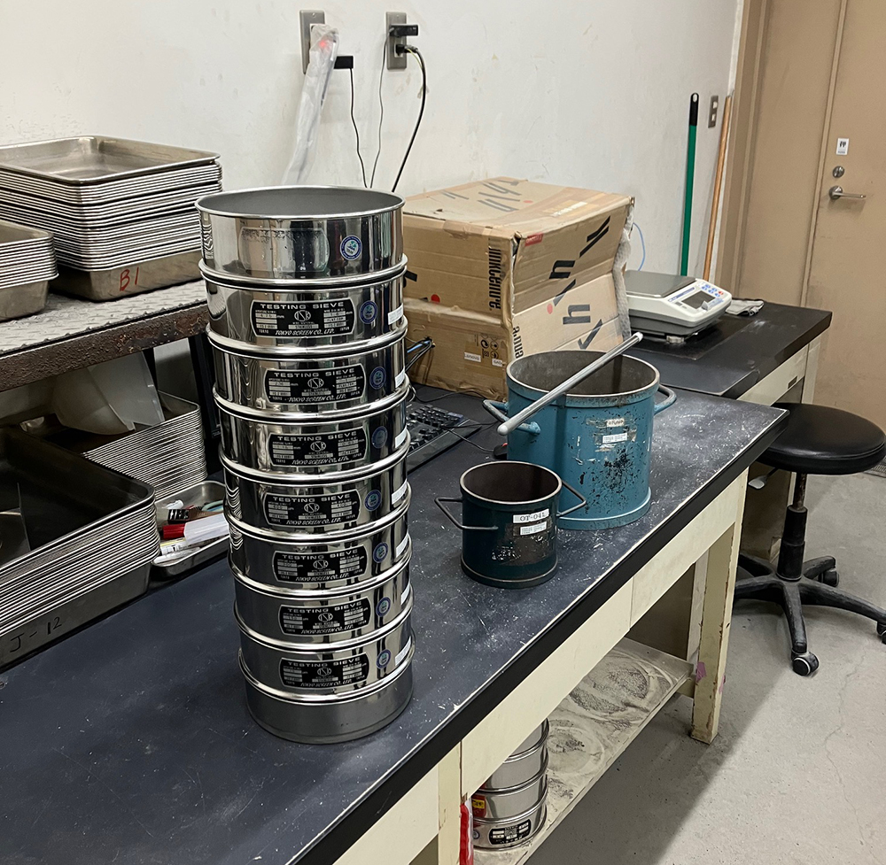 骨材試験風景。