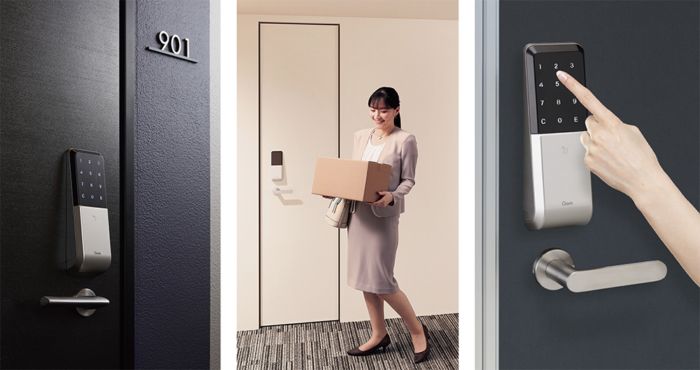 当社は鍵と錠前の製造・販売を行うセキュリティメーカーであり、サッシ・ドア用金物なども取り扱う総合金物メーカーでもあります。オリジナル錠前ブランド「Clavisクラビス」を展開し、ハンズフリーで施解錠可能な電気錠シリーズ〈Tebraテブラ〉シリーズなど、幅広いシステム製品を取り扱っております。今回は、ホテルだけでなく、賃貸マンションや宅配ボックスなど幅広いシーンにおすすめなテンキーカードロック「Tebra X APHテブラエクスエーピーエイチ」をご紹介します。
