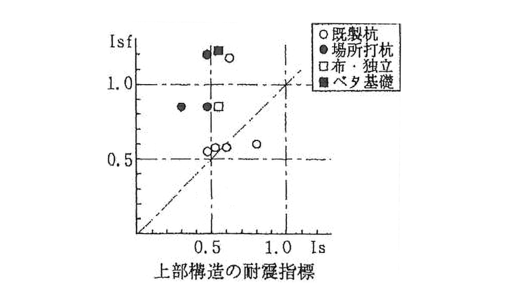 ②上部構造のIsより基礎の耐震性能Isfが大きい傾向が認められる。(図❺)