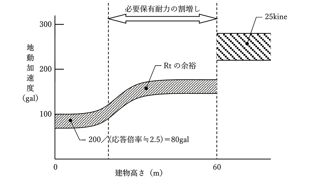 中高層建築物審査要領では、加速度が150cm/sec2以上および350cm/sec2以上の地震動に対する地盤の液状化判定を行い、これを踏まえた基礎の設計、建物高さに応じた必要保有耐力の割増し、大地震時の基礎の検討などを求めている。また、基礎審査要領では、都全域の地盤状況や過去の地震被害に鑑みた杭の支持力算定式、軟弱地盤での対応方針や要領を掲載している。