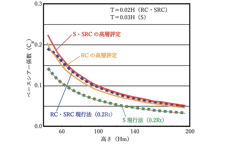 図❽ 高層評定の設計用地震力と現行法による設計用地震力の比較 3)