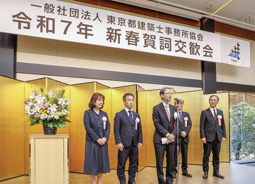 既存建物の用途変更を含めたリノベーションに注目が集まっているが、東京都の建築安全条例の規制などが足かせになっているとも聞いている。これに対しては建築基準法の改正などを見据えて合理的な改正、規制緩和に向けて検討に入っている。リノベーションも東京の街の魅力のひとつとして力を発揮していけるようわれわれも協力していく。日本の建物、東京の建物が世界中から注目されているとも聞いている。東京都建築士事務所協会の皆様の行う設計はブランドだということで、是非世界に発信していただきたい。われわれ都議連も全力で応援させていただく。皆様に色々とご心配おかけしているがしっかりと責任を持って改革し前に進めるよう頑張っていきたい。