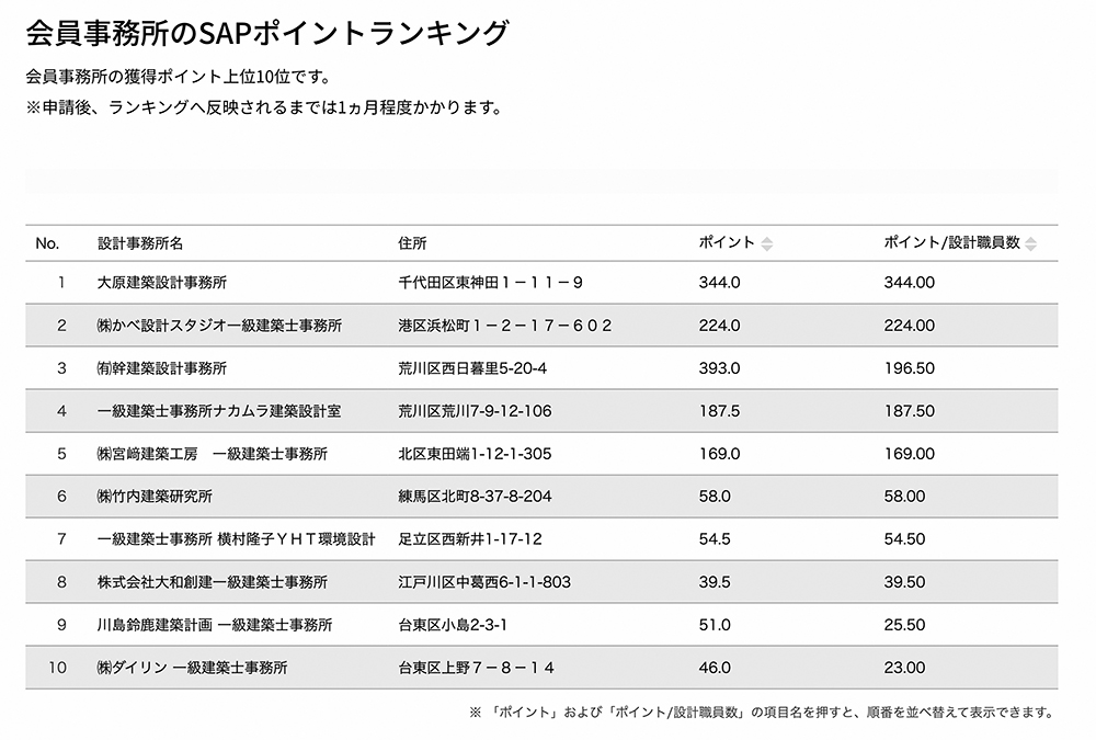 協会ホームページに掲載されている会員事務所のSAPポイントランキング