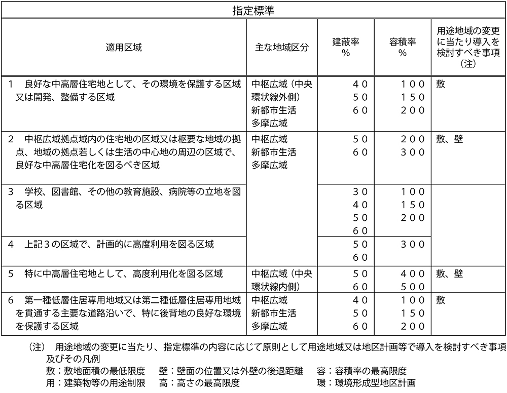 東京都都市整備局ホームページ「用途地域等に関する指定方針及び指定基準について」