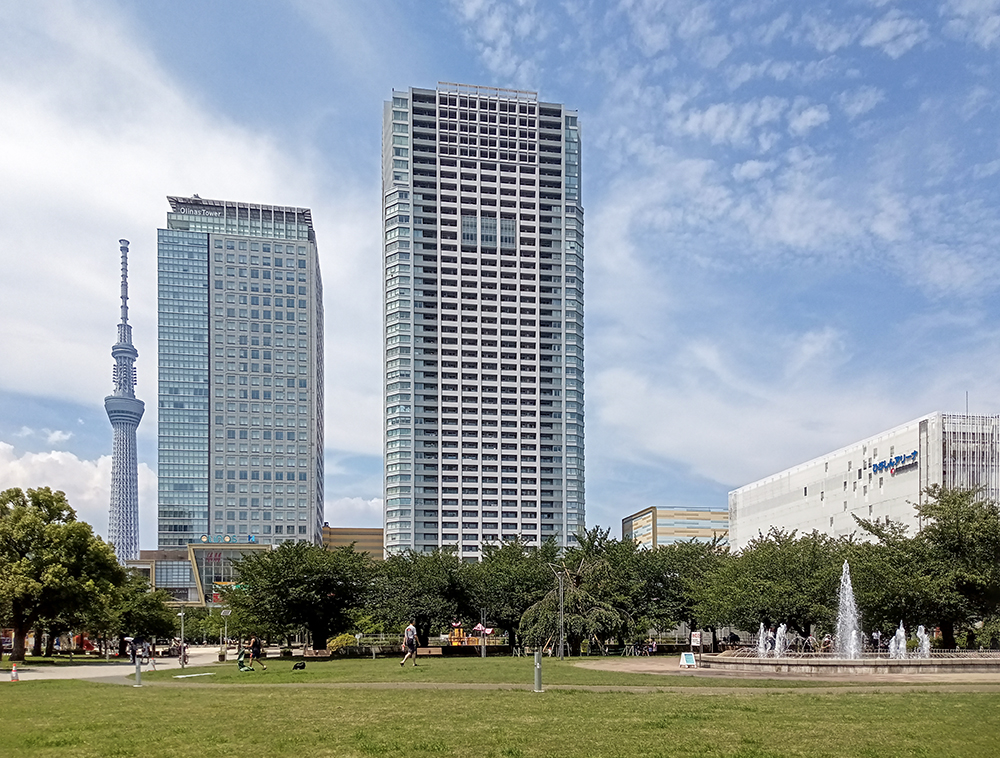 写真❸ 錦糸公園から望む錦糸町オリナス。筆者撮影