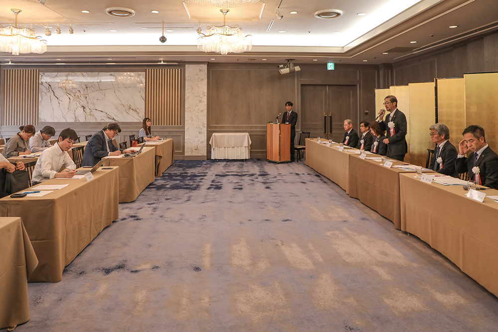 会長の挨拶の後に今期からの副会長、専務理事、常任理事が紹介され、議事が再開された。