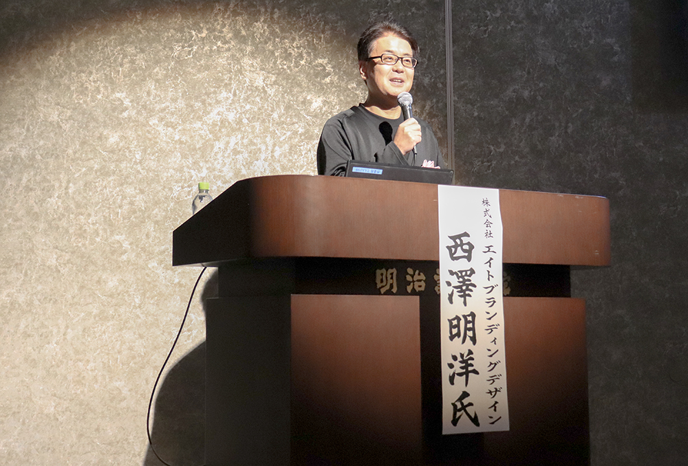 協会の賀詞交歓会に先立って開催された特別講演は、株式会社エイトブランディングデザイン代表の西澤明洋さんを講師にお迎えしました。テーマは「ブランディングデザインと建築」です。「ブランディングデザイン」……正直言って耳慣れない言葉です。西澤さんはデザイン業界で先んじてこれを専門に活動されてきました。
