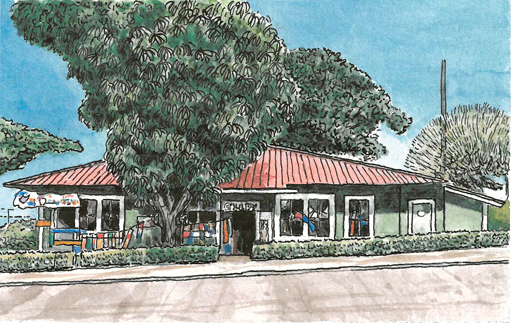 ギャラリーには、世界中から集めた珍しい物やハワイの手工芸品、民芸品、装飾品、民族楽器、ドラ、ウクレレ、コイン、お札、Tシャツ、アロハシャツ、パンツ、帽子、絵、カード、写真、書籍、サーフボード、サンダル等に至るまで、ところ狭しと並べられています。