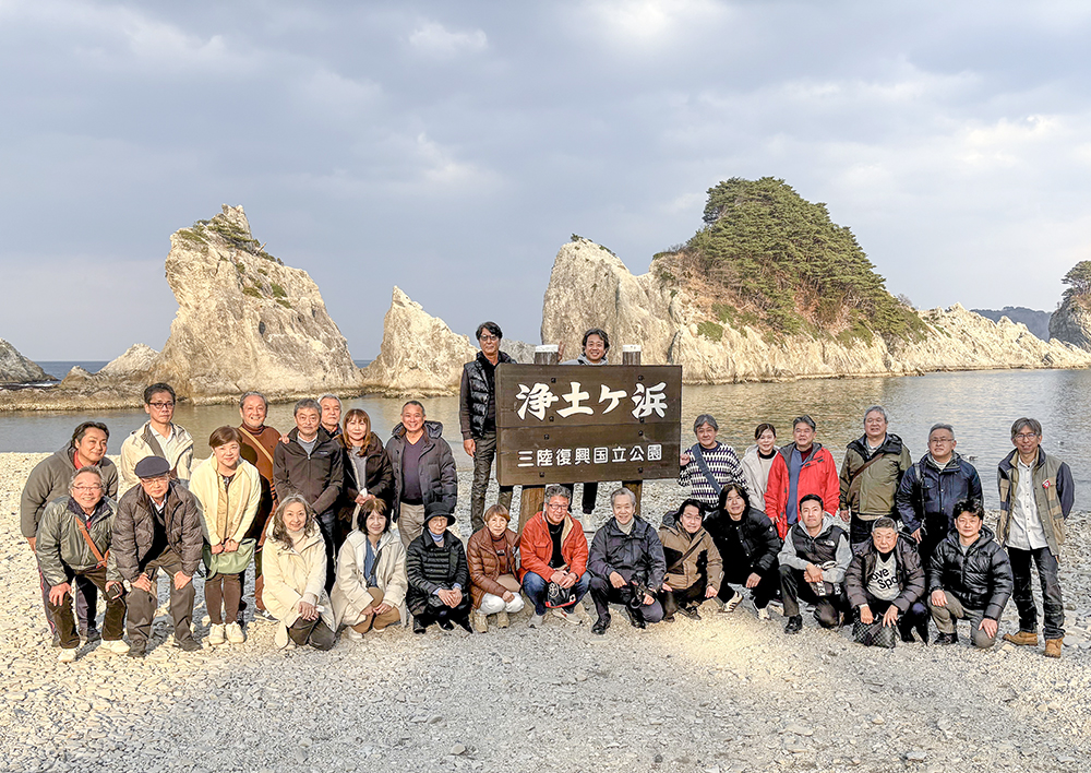 春とは思えないほどの日差しと穏やかな陽気に恵まれた3日間。宮城県塩釜市の笹かまぼこ工場見学に始まり、道の駅「さんさん南三陸」と震災遺構、北上して岩手県大船渡市の「かもめテラス/三陸菓匠さいとう総本店」、三陸鉄道、白い岩肌が美しい浄土ヶ浜海岸、そして閉校した校舎を活用した「道の駅三田貝分校」まで、充実した研修旅行に30名が参加した。