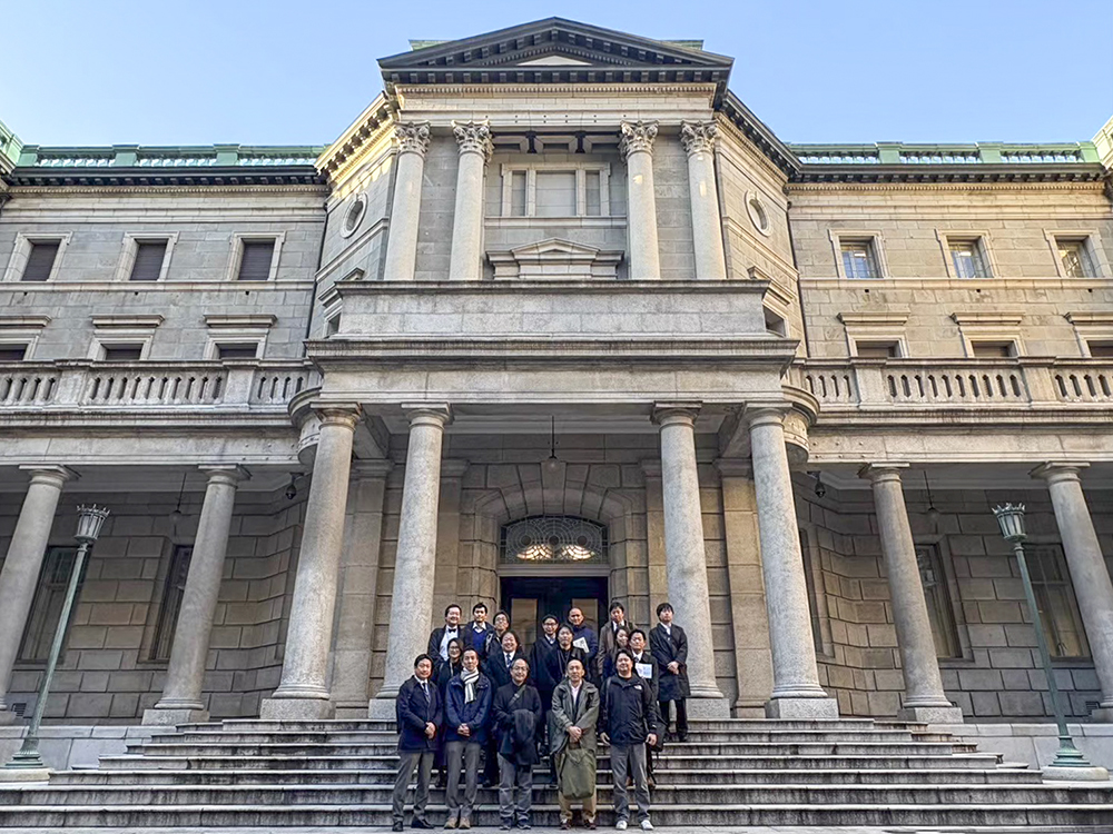 地下金庫は明治期の姿をほぼそのまま現在に残す貴重な空間である。建設当時の白い煉瓦壁(白釉煉瓦)、金庫扉、アスファルトの床など、明治時代の最先端の技術と雰囲気を見学できた。集合写真を撮影した中庭は古典主義建築の美しさを誇る一本石の柱が回廊に連なる威風堂々とした印象であった。