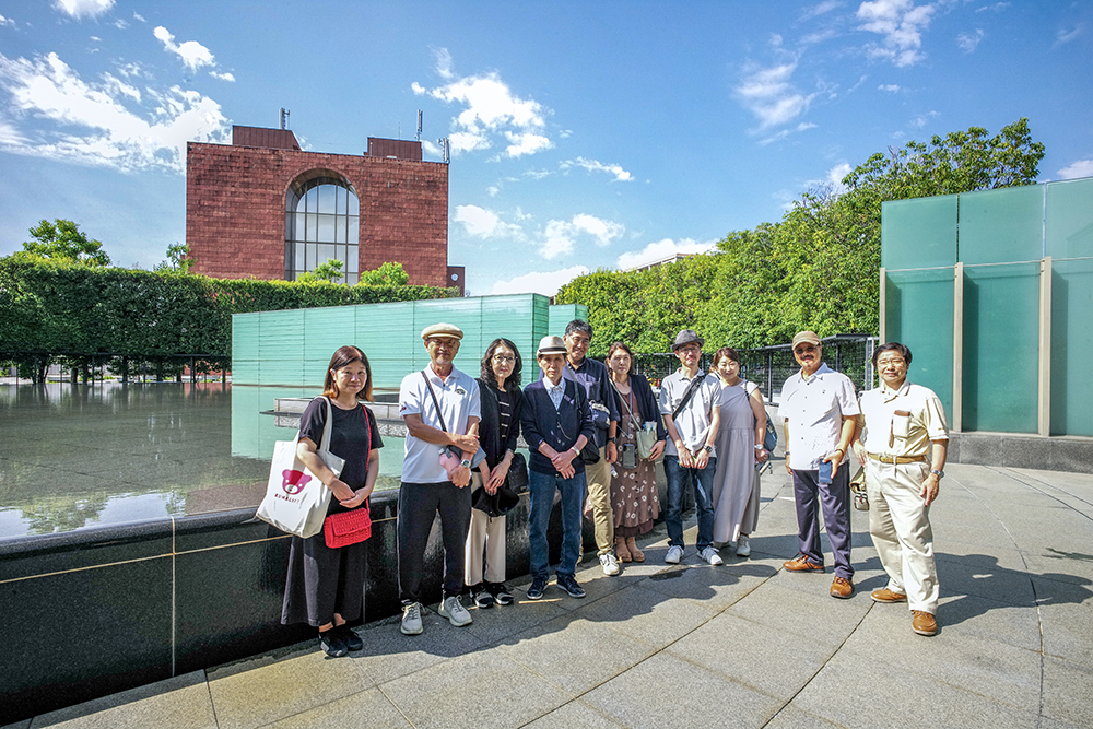 初日は、久米設計が設計した「長崎原爆記念館」(1996年)を訪れ、最後の被爆地の惨状と脅威を体験し、すぐ隣に建つ栗生明設計の「国立長崎原爆死没者追悼平和祈念館」(2003年)へ向かった。地下の追悼空間に立つ光柱の上にあるトップライトは、上空500mで太陽のような火球が炸裂したであろう爆心地の空が見えるようになっており、正面には死没者名簿と献花台があり、厳かな空間の中で平和を祈念する。多くの犠牲者が水を求めて亡くなったことから、館内はいたるるところに水が流れていて、地上に出ると大きな水盤が広がり、水盤の底には犠牲となった7万人の命を表す光ファイバーが埋め込まれている。その後訪れた爆心地公園のグラウンドゼロには、黒御影の中心地碑が立ち、周辺にある被爆当時3,000℃で焼かれた地層や東洋一を誇った「旧浦上天主堂」(1925年)の移築された遺壁を見学した。平和記念公園に移動し、天主堂の見える丘から「浦上天主堂」(1959年再建、1980年改装)を眺め、平和祈念像の前で記念撮影となった。