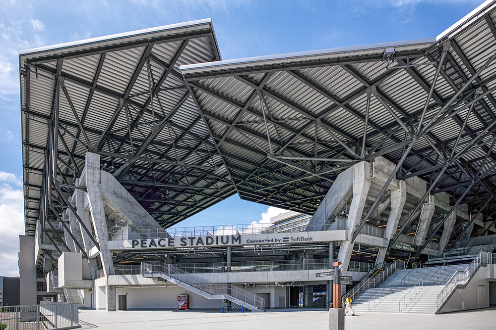 長崎スタジアムシティ(基本設計:環境デザイン研究所・安井建築設計事務所JV)のPEACE STADIUM。