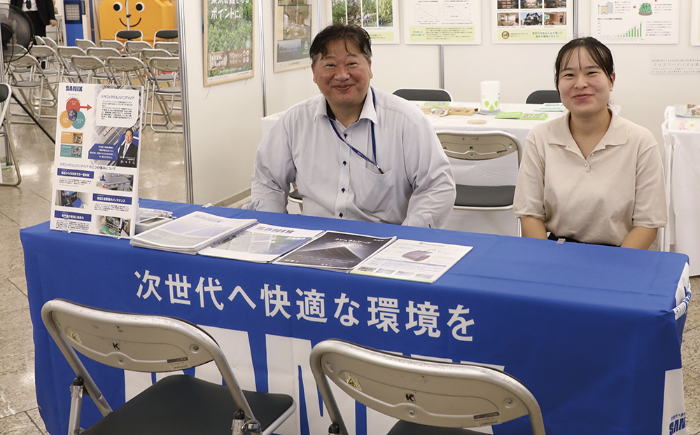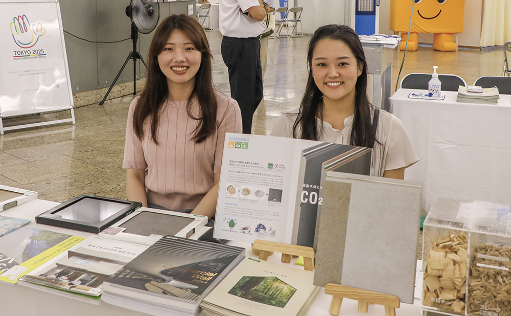 休憩スペースの前に設置された75インチのモニターでは支部・正会員と賛助会11社の動画が放映された。多くの企業・団体がパネルや商品の展示を行い、来場者にアピールしていた。正会員ブース・パネル展示にサンメイト、佐藤総合計画、シードルデザインハウスのほか、青年部会展示があった。賛助会ブース・パネル展示にはYKK AP、地耐協、BM-Vietnam、ニチハ、文化シャッター、三協/日本品質保証機構、サニックスエンジニアリング、三和シャッター、矢作建設があった。関連団体ブースとして、東京構造設計事務所協会、日本外断熱協会、東京都農林水産振興財団が出展。行政コーナーとして新宿区が出展した。