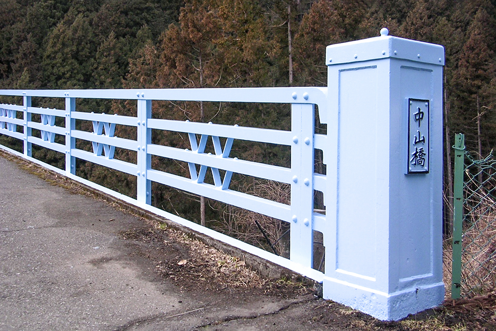 ❷オリジナルが残る「中山橋」の鋼製高欄と鋼製の親柱。(撮影:紅林 2005年)
