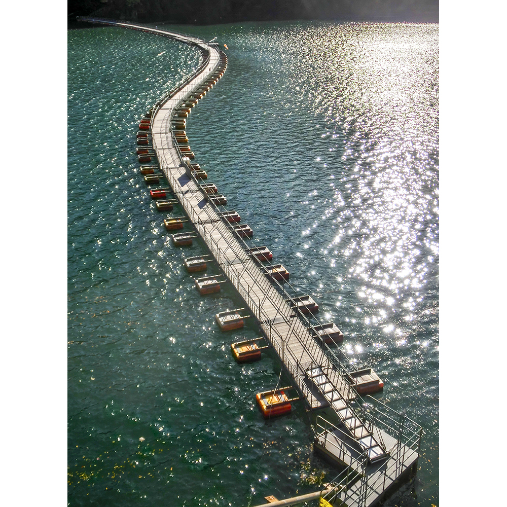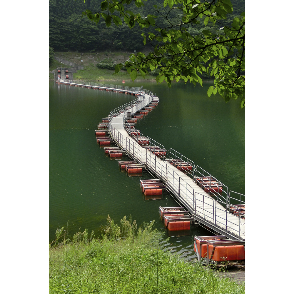 奥多摩湖建設によって行き来を制限された対岸の山作業などを行うために架設された人道橋。構造は、ポリエチレン製の浮きの上に板を渡したいわゆる浮橋で、かつては浮きにドラム缶を使用していたため「ドラム缶橋」とも呼ばれる。橋は湖面の高さや風によって、上下左右とまるで生き物のように形を変える。湖中央付近の麦山(長さ約220m)と、「鴨沢橋」付近の留浦(長さ約210m)の2カ所に設けられている。奥多摩湖に行ったらぜひ渡って欲しい橋である。