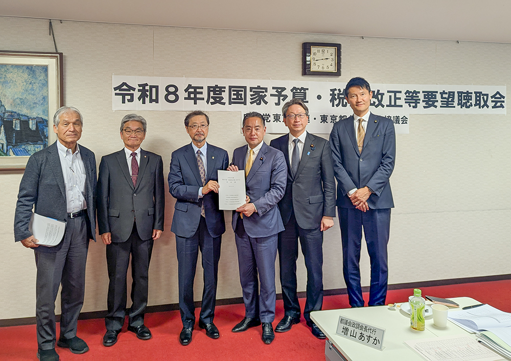 当会は、令和7(2025)年10月29日、令和8年度国家予算等に関し、東京建築設計関連事務所協会協議会(通称TARC)のメンバーである(一社)東京構造設計事務所協会、(一社)東京都設備設計事務所協会及び(一社)日本建築積算事務所協会関東支部の3団体並びに東京都建築士事務所政経研究会と共同して、自由民主党東京都支部連合会に対し次の5項目の要望書を提出しました。