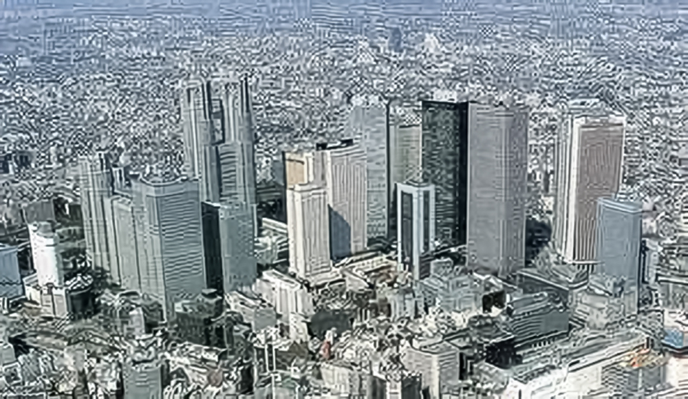 この政策意図をもとに都心部は全体的に厳しめで抑制基調、一方、副都心部においては新宿を中心に建築活動を積極的に誘導する方向での、比較的高めの容積計画がまとめられた。具体には、東京都は、中心市街地の中高層化・不燃化を進めようと、中心部である環状6号線内側の都心・副都心(写真❷)の商業地については容積率600%~1,000%を、その他の商業地については400%~700%を、また住宅地については200%~400%を指定した。