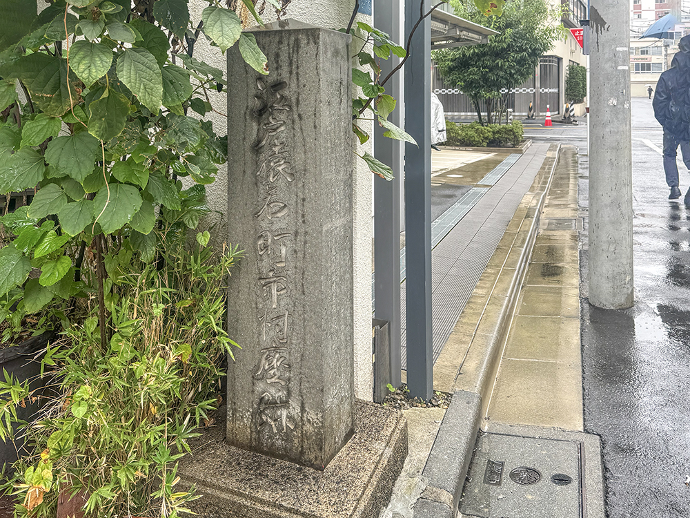旧・猿若町の市村座跡石碑。