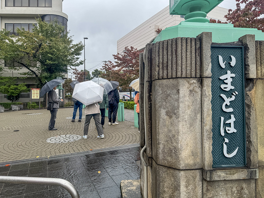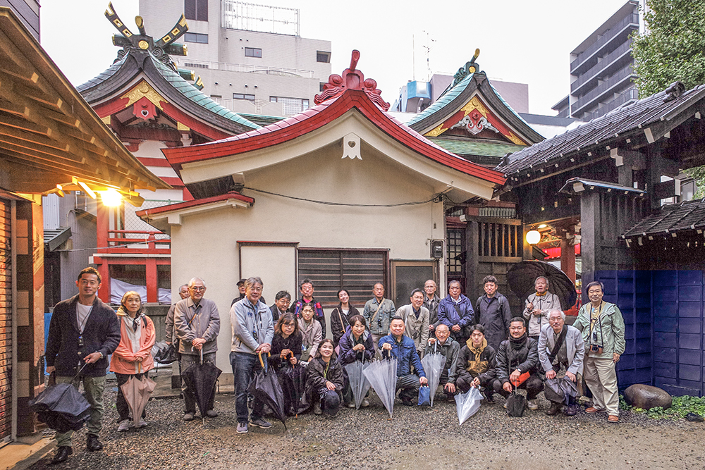 「見返り柳」のある吉原大門交差点から「吉原神社」に向かい、神社の奥にあるレプリカの吉原大門の前で記念撮影。そこから50mほどのところにある「吉原弁財天」を見学し、雨の中ではあったが、楽しい4時間ほどの町歩きを終了した。