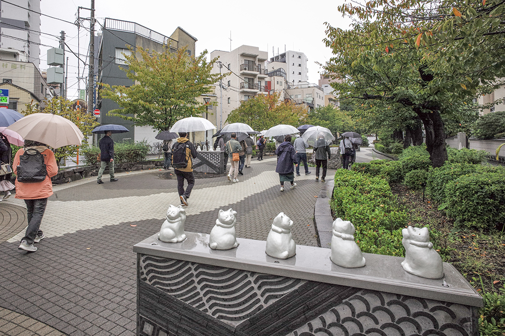 山谷堀暗渠上に整備された山谷堀公園。山谷堀はかつての吉原へのメインルート。