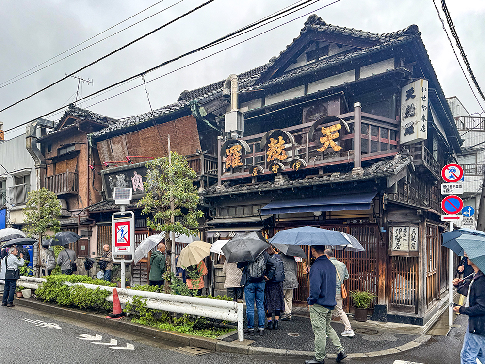 吉原に向かう途中、吉原大門の前のてんぷらで有名な「土手の伊勢屋」さんのご主人にたまたまお会いでき、お話を伺うことができた。伊勢屋の建物は戦前の昭和2(1927)年に建てられた木造建物で、東京大空襲でも焼け残った登録有形文化財。今ではなかなか見ることのできなくなった杉板下見張りの外壁の建物を見学した。