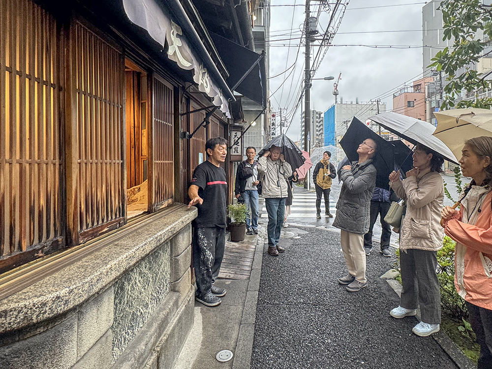 まずは、浅草・花川戸の「台東区民会館」に集合し、9階ホールに設置されていた「べらぼう 江戸たいとう大河ドラマ館」(令和7/2025年2月1日〜令和8/2026年1月12日に開館)を見学して事前の知識をつけた。区民会館の1階と9階の大河ドラマ館の観客導入部は、当支部のエフ・デザインが計画した、浮世絵や江戸花街文化を上手に表現した内装が施されている。1階の内装は来館者に好評なため、大河ドラマ館が閉館後も残すことが予定されている。