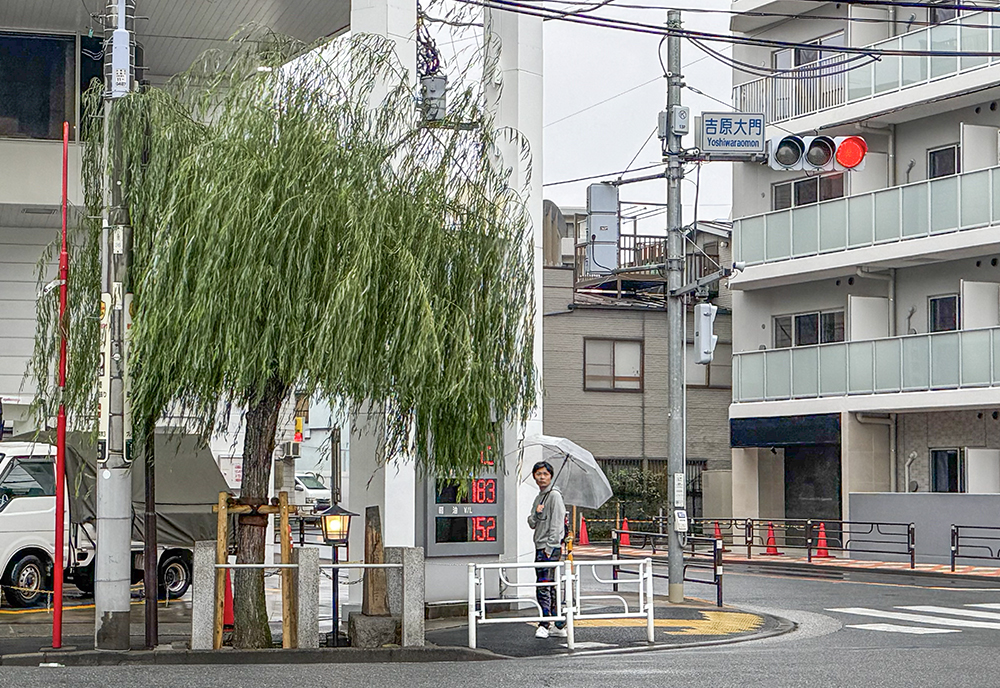 吉原大門の交差点の「見返り柳」。