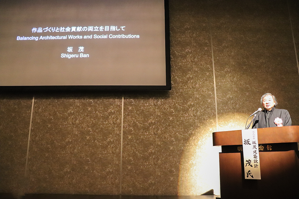 新春賀詞交歓会に際して開催される特別講演に坂茂先生を講師にお招きし、「作品づくりと社会貢献の両立を目指して」と題した講演をいただきました。