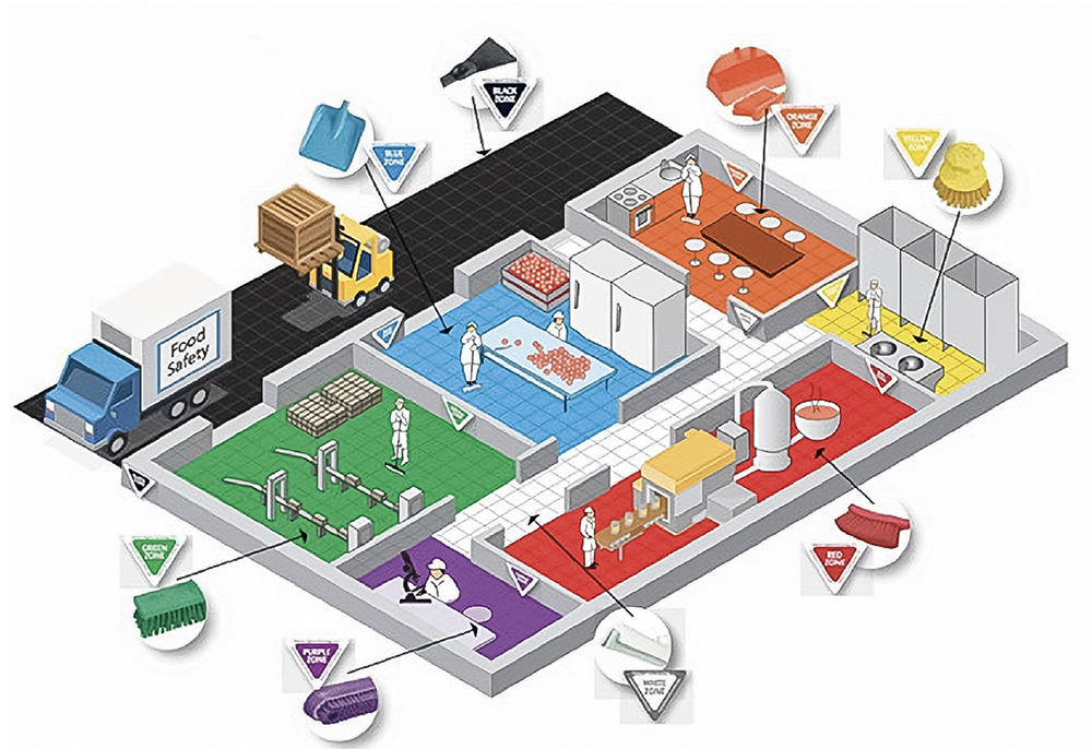 汚染物質、表面、または作業エリアを色分けで識別の図。