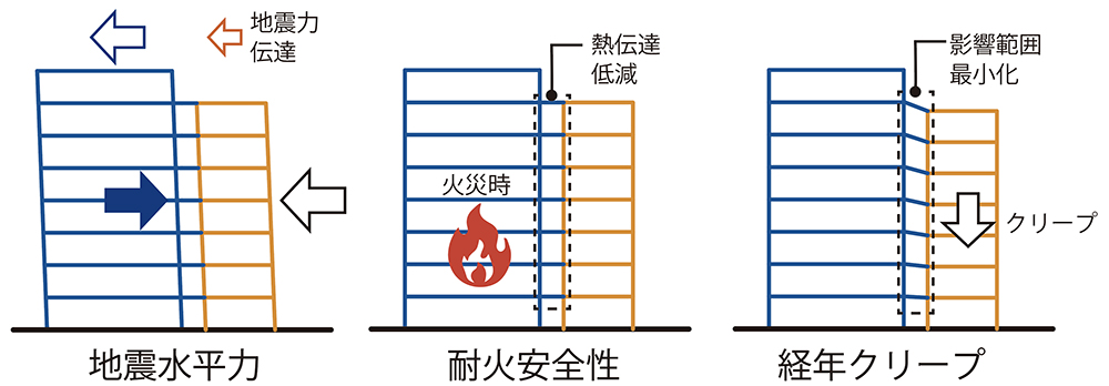 建物は凹型の敷地形状を活かし、地震水平力・経年変位・耐火性能などの木質構造の課題解決に向けた3つのブロックに分節した構成である。