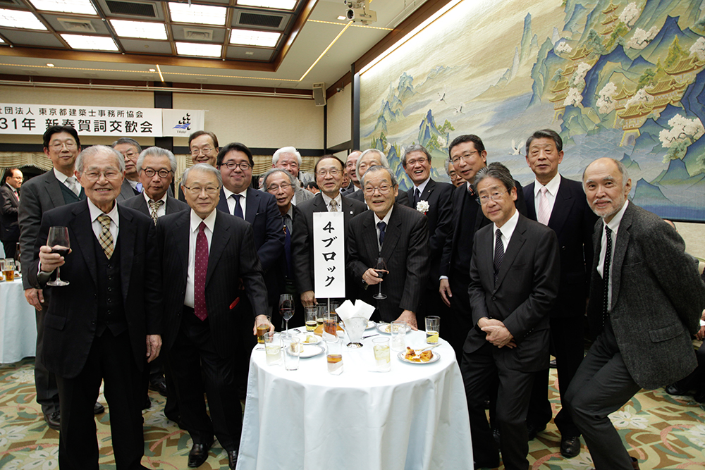 佐々木宏幸日本建築士事務所協会連合会会長の音頭で乾杯の運びとなり、楽しい歓談のひとときを経て、毎年恒例となっている中村栄太郎名誉会員の中締め、山下登副会長の閉会ご挨拶と続き、つつがなくすべてのプログラムが終了した。
